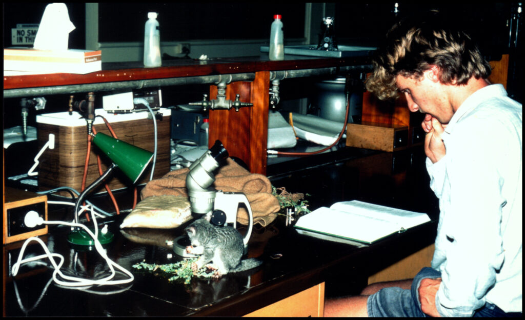 Nick Skelton Watches Pet Possum Eat Botany Samples (Oct 1985), [REF-00103597]. University of Sydney Archives, accessed 02/02/2026, https://archives-search.sydney.edu.au/nodes/view/156831.