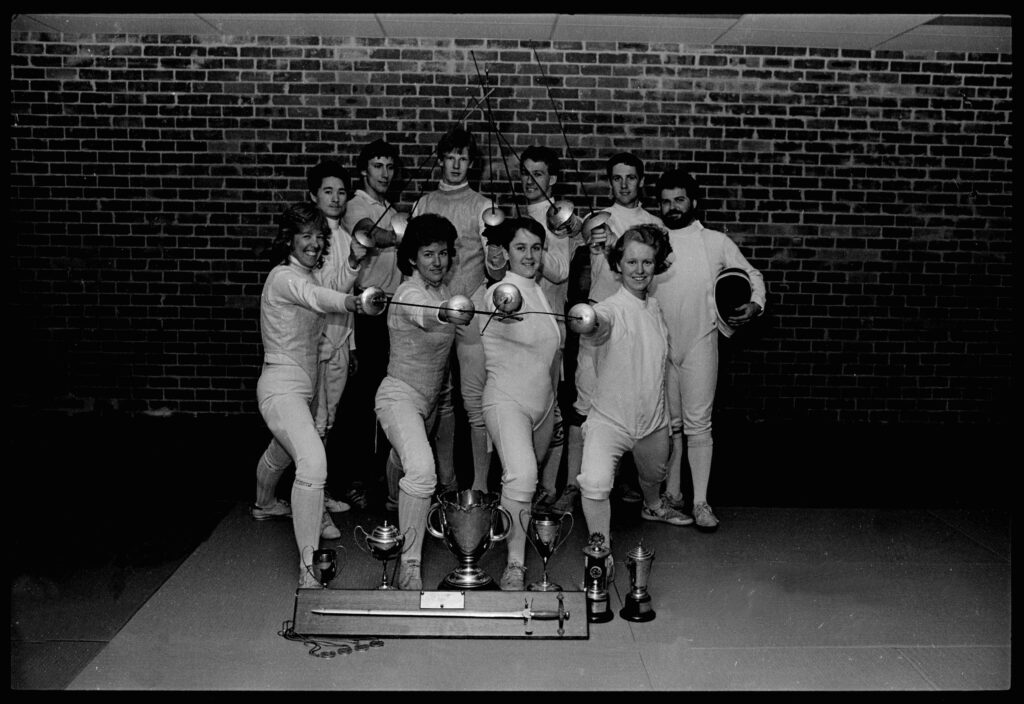 Victorious 1985 Intervarsity Fencing Team with Prizes (1985), [REF-00012629]. University of Sydney Archives, accessed 02/02/2026, https://archives-search.sydney.edu.au/nodes/view/31088.