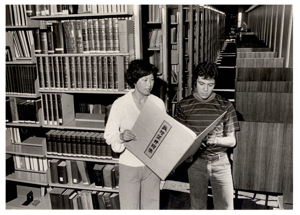 Lily Lee and Steven Brent in the Oriental Library at Fisher Library (1978), [REF-00013202]. University of Sydney Archives, accessed 02/12/2025, https://archives-search.sydney.edu.au/nodes/view/33077.